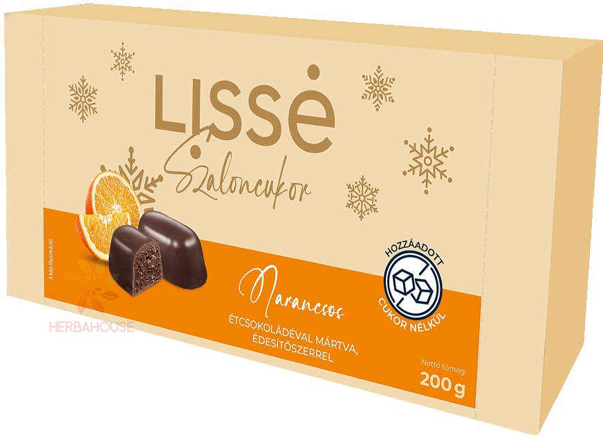 Lissé Bomboane de Crăciun învelite în ciocolată neagră umplute cu cremă de cacao cu aromă de portocale cu îndulcitor (200g)