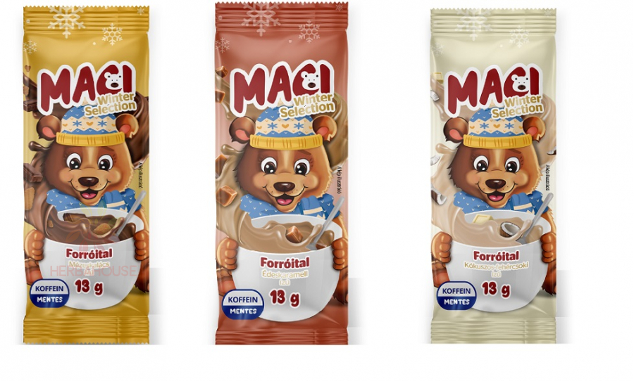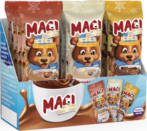 Selecția de iarnă Maci este o selecție de pudră de băutură instant de ciocolată caldă în 3 arome diferite. Ciocolata caldă este concepută pentru serile reci de iarnă, nu doar pentru adulți, ci și pentru copii. Ciocolata caldă instant ușor solubilă este ideală pentru reuniuni de familie sau pentru o scurtă pauză în timpul zilelor aglomerate de lucru.
