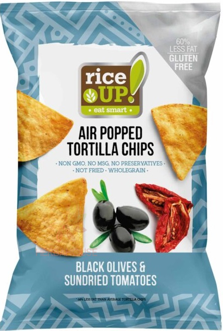 Rice Up Chipsuri de tortilla din porumb fără gluten cu aromă de măsline negre și roșii uscate (60g)