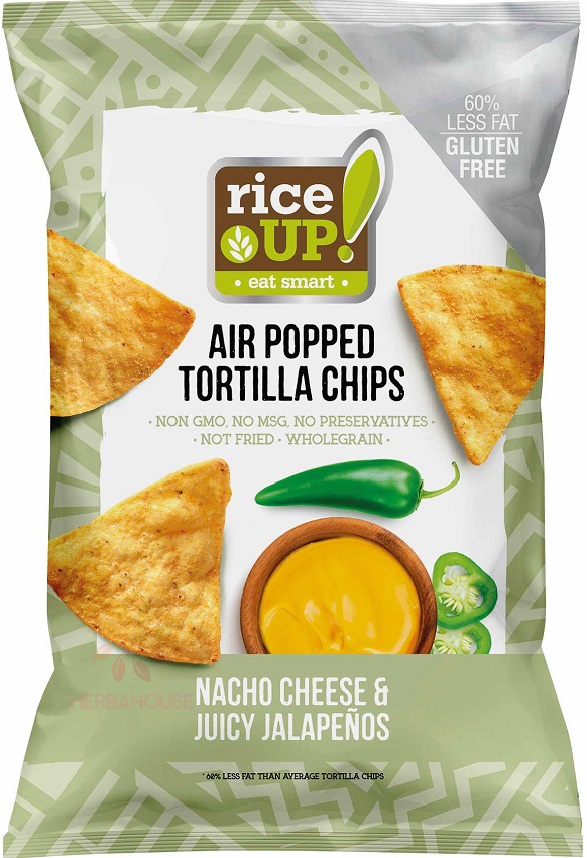 Rice Up Chipsuri tortilla din porumb fără gluten cu aromă de brânză nachos și jalapeño (60g)